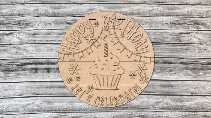 DIY Happy Birthday Lets Celebrate Door Hanger - UNFINISHED