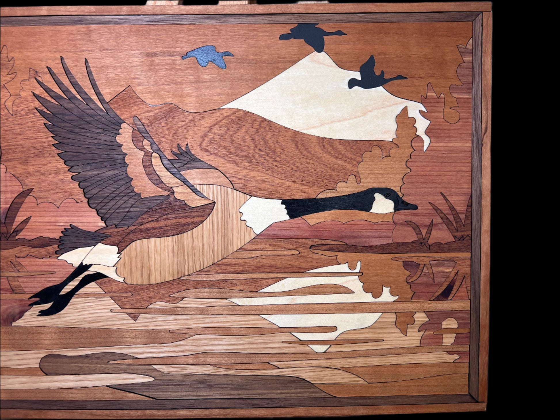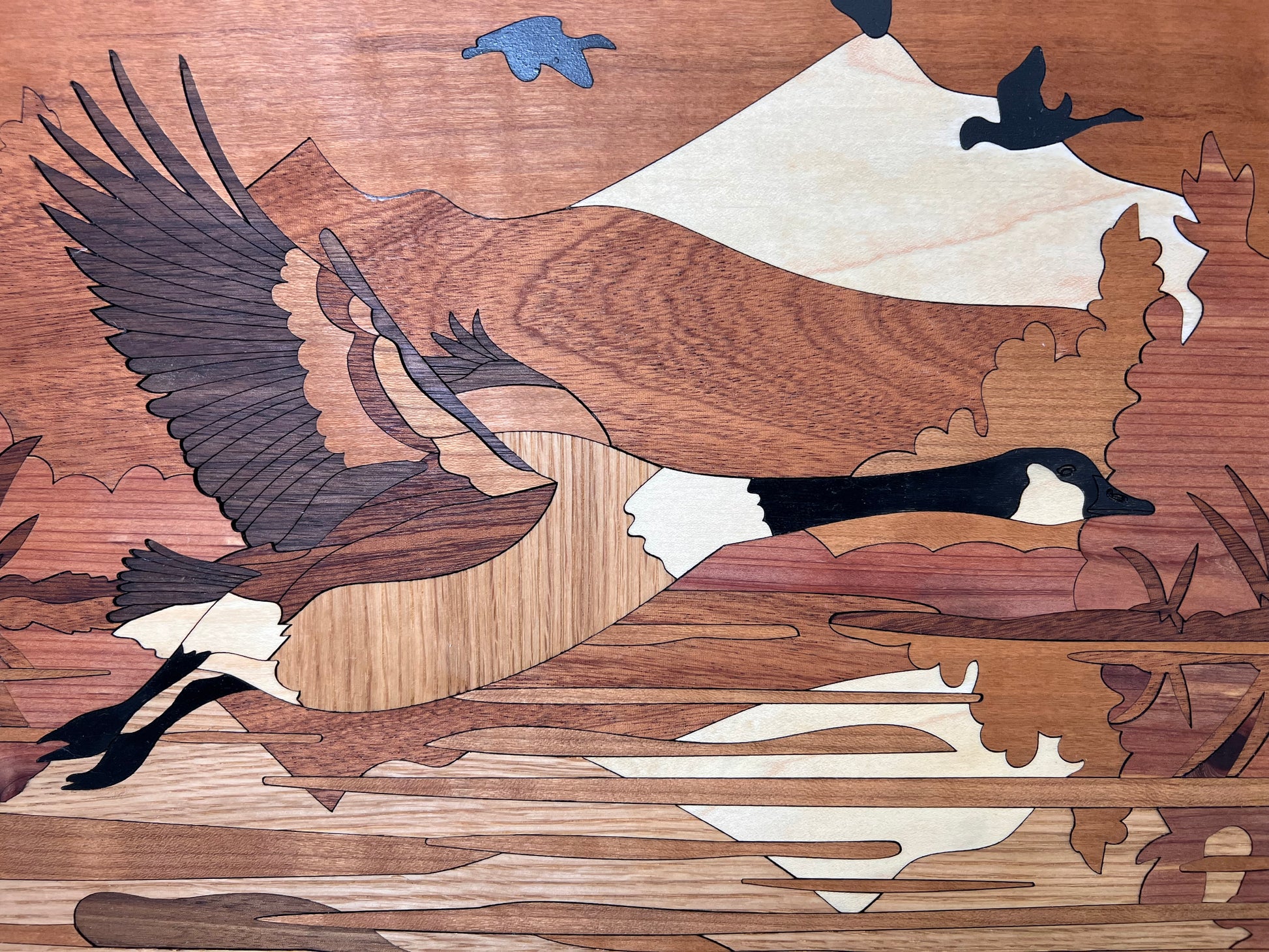Introducing the Mini Canadian Goose Showstopper - a true masterpiece of craftsmanship. This exquisite piece is meticulously laser cut and crafted from the finest Cedar, Cherry, Mahogany, Maple, Oak, and Walnut. Elevate your home decor with this elegant and exclusive art piece.