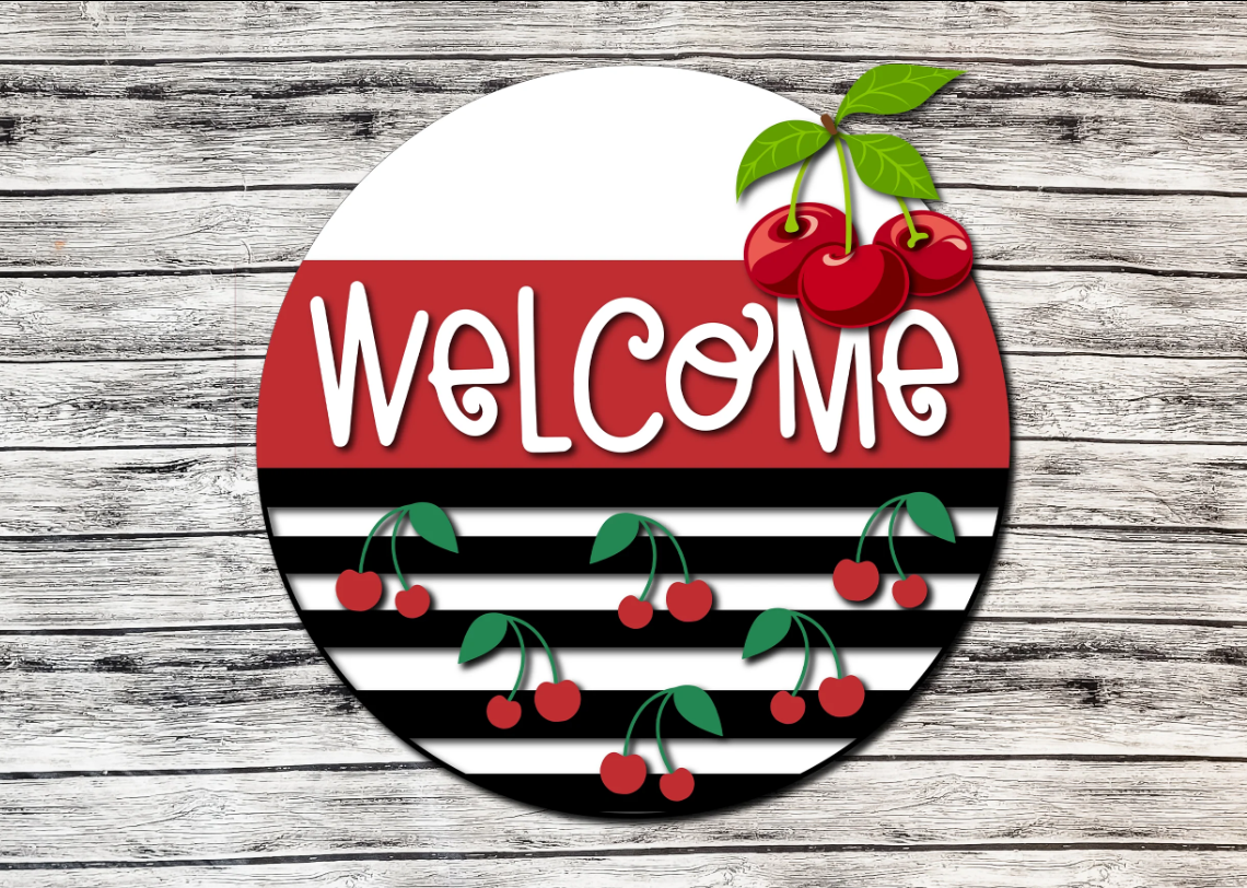 Welcome your guests with a cherry on top with our Welcome Cherries Door Hanger! This quirky and fun design adds a playful touch to your entryway, while also making your guests feel warm and invited. Hang it on your door and let the cherries do the welcoming for you!