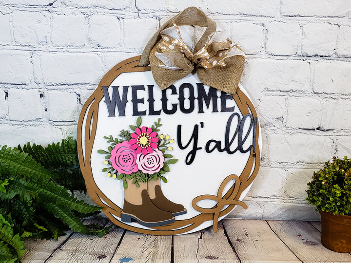 Welcome Y'all Boots Door Hanger - Finished